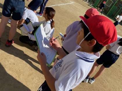 走っている子1人につき1人の担当者が付くのですが、それぞれの担当者が1周走ったタイムを伝え、ペースが一定に保てるように声をかけていました。マラソンカードには今日のめあてが選べるようルーブリック(指標)が用意されていました。