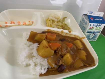 豚肉と金時豆のカレーライス はくさいのピクルス 棒チーズ