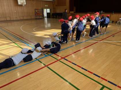 赤白に分かれて行うのですが、自分のグループの勝負がついたら勝負のついていないグループの応援に行くことができます。
