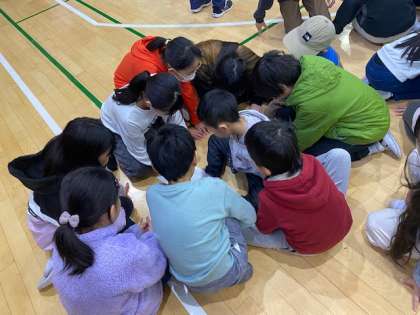 今朝は、なかよし班による児童集会。今日は集会委員会による『おせちビンゴ』を行いました。