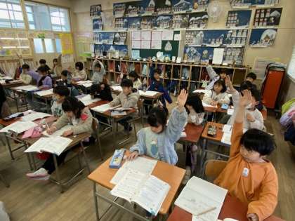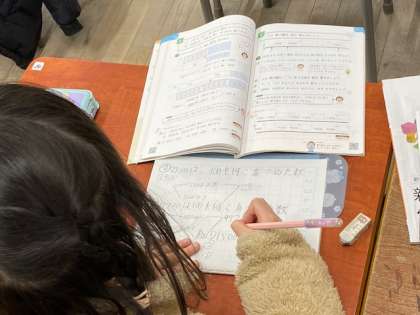 2年生の算数では、『100をもとにして、数の見方を広げよう』というめあてで学習をしていました。