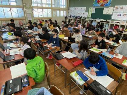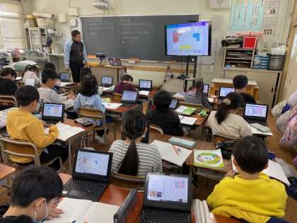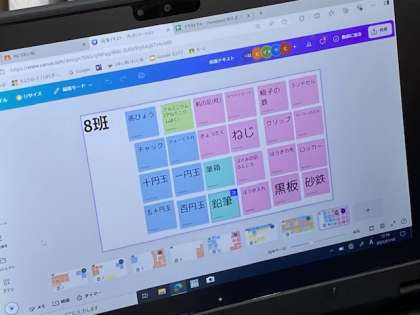 子どもたちは、学習者端末にクリップや鉛筆、ノート、粘土など身近なものについて磁石につくかくっつかないのかを考え、色分けしていきました。
