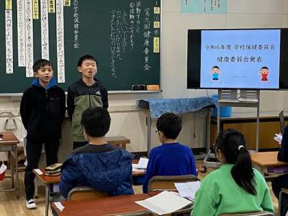 大江小学校では、今年度、特別活動の研究を通して、話し合う力や表現する力、発表する力を実践の中で育成していこうと取り組んでいます。今日は委員会活動を通し、研究授業として実施しました。