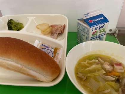 豚肉とじゃがいものガーリック焼き スープ煮 ブロッコリーのサラダ