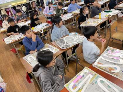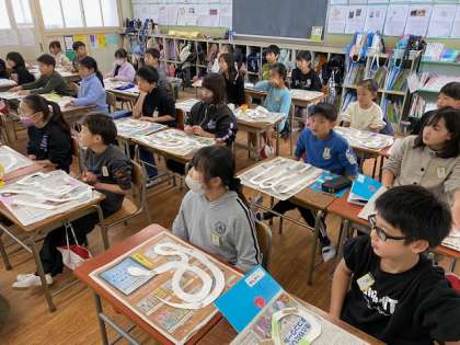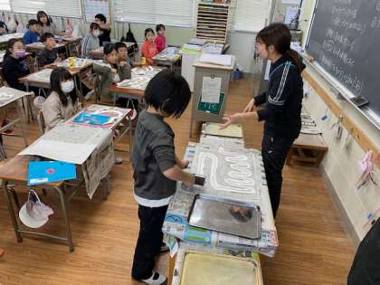 3年生の図工では、これまで取り組んできた『ヘビの紙版画』もいよいよ印刷です。