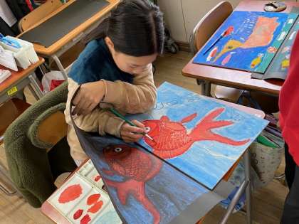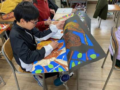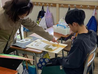 6年生の図工で取り組んできた多色刷り版画もいよいよ終盤戦。鮮やかな絵が浮かび上がってきました(^^)