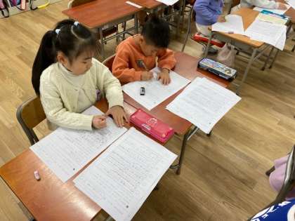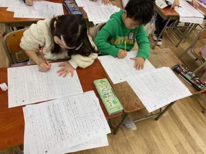 自分で考えたお話だけに、子どもたちはどんどん書いていて、1年間でこんなに書けるようになったんだなぁと感心しながら見ていました。タイトルや内容も面白かったですよ(^^)