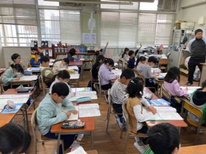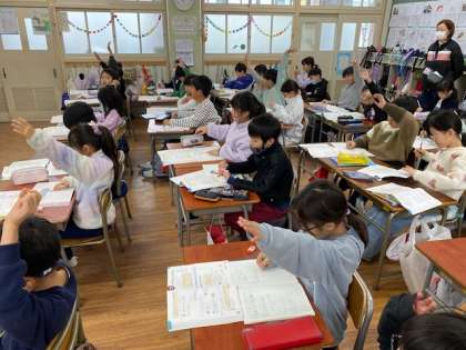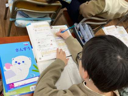 3年生の算数では、□を使った式の仕上げとして教科書の『たしかめよう』に載っている問題に取り組んでいました。