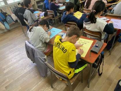 教室に近づいてもほとんど音が聞こえてこないので、どこか特別教室にでも行ったのかなと思いきや、とても集中して作業していてびっくり。6年生に対する思いや自分たちが次に最高学年になるという思いが高まってきたのかなと感じさせるワンシーンでした(^^)