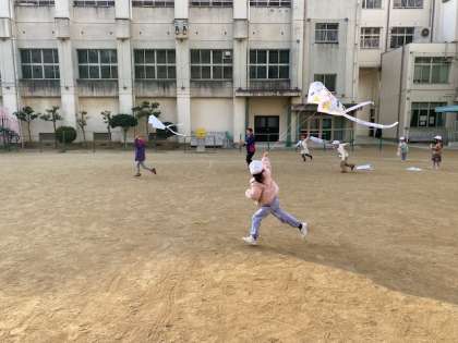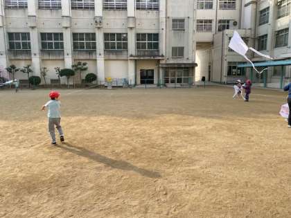 たこあげは、走ると上がっていったので、笑顔で走っていました(^^)