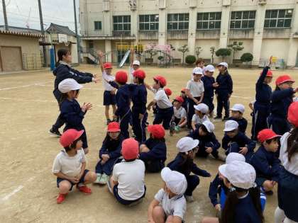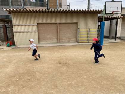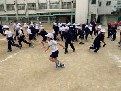 今日は日差しが雲で遮られ、気温があまり上がらない中での体育だったので、「今から鬼ごっこをします。」と聞いて、子どもたちは大喜び。