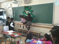 2年生の算数では、両手を左右にのばした長さをはかろうと取り組んでいました。