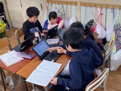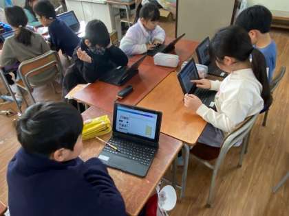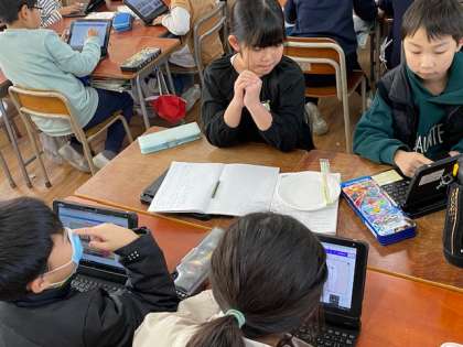 次に、調べたことをプレゼン資料としてまとめていきます。使う字のフォントなど細かいことを同じ班の友だちに相談しながら進めていました(^^)