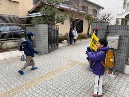本日の天気は、曇りのち晴れ、登校時の気温は5度と寒さはやわらいでいます。