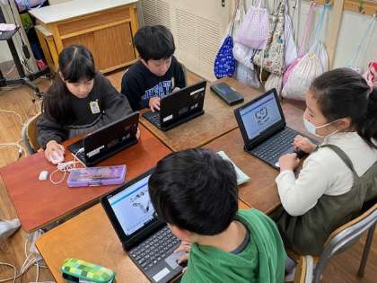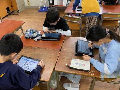 まずは下書きですが、学習者用端末で撮った自分の紙版画のどこにどんな感じで俳句を入れるか、色々と試していました。