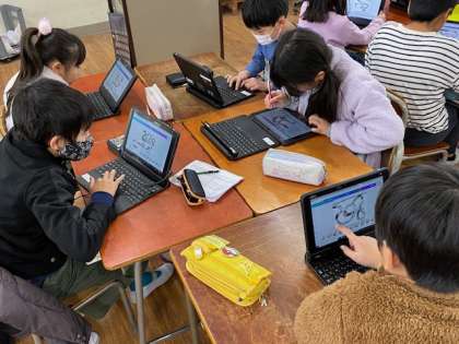 3年生の図工では、先日印刷した『へびの紙版画に俳句を入れよう』と取り組んでいました。