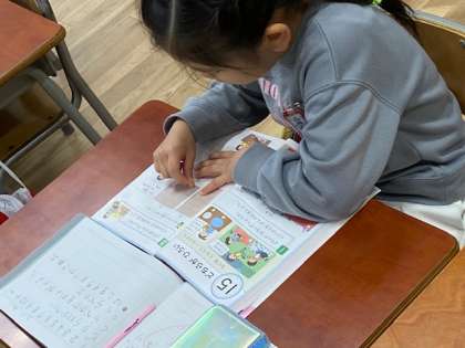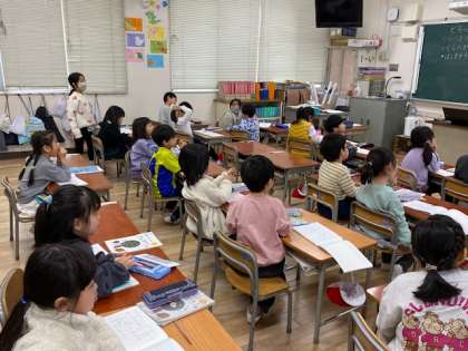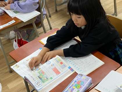 1年生の算数では、『どちらがひろい?くらべかたを考えよう』と、与えられた図の広さをどのように比べたら良いかについて考えていました。
