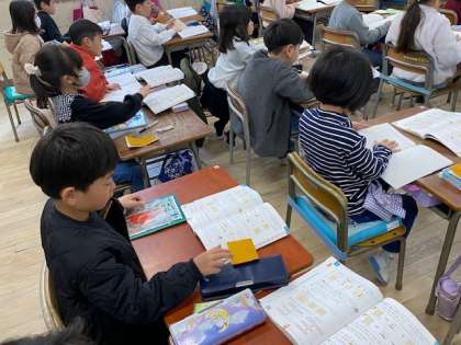 分数の大きさは分かりにくいので、1枚の折り紙を折って考えていきました。