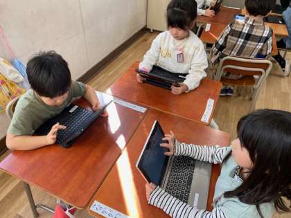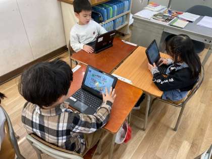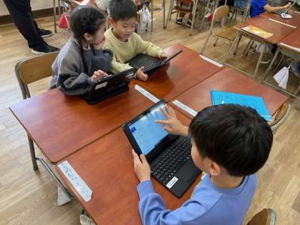 1年生の教室をのぞいてみると、学習者用端末でデジタルAIドリル『ナビマ』に取り組んでいました。