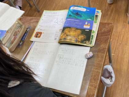 今日は、音が伝わる時、音が出るものの様子はどのようになっているかについて、これまでの実験から考えていました。