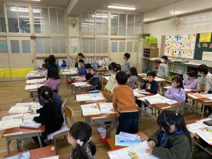 1年生の道徳では、『やすみじかん』というお話を通して、休み時間にぶつかりそうになった経験など、危ない目にあった経験を振り返って、安全な生活について考えました。
