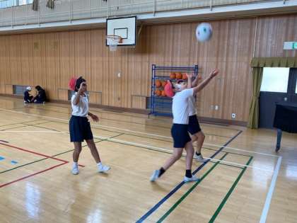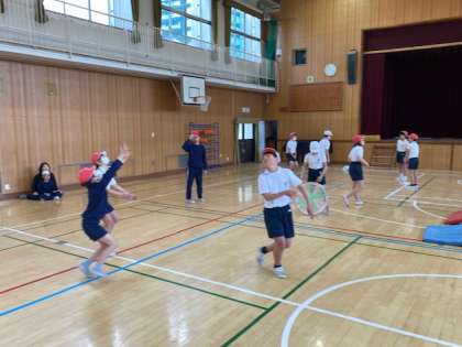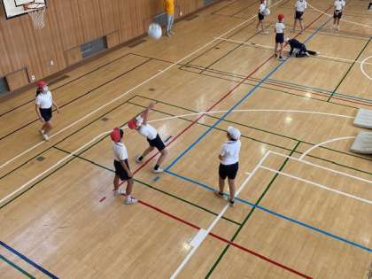5年生の体育では、キャッチバレーボールに取り組んでいます。