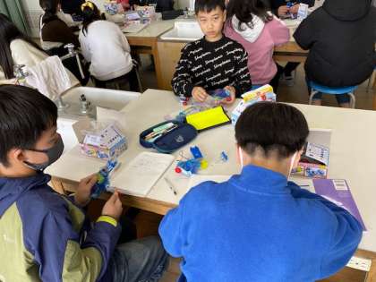 6年生の理科では、コンデンサー(電気を蓄えたり放出したりする電子部品)を使い、電気を蓄えることと、蓄えた電気を使うことについて実験しました。