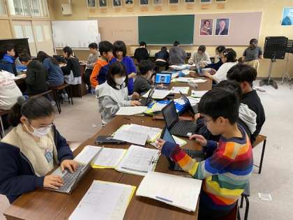 5年生の総合では、先週の文化交流会で一応の区切りを迎えたルワンダとの交流を振り返り、特に印象に残ったことをプレゼン資料としてまとめていました。
