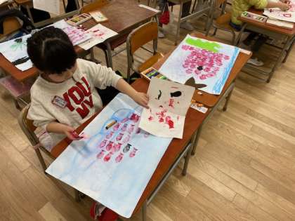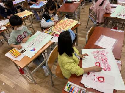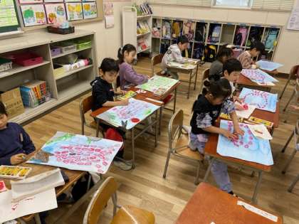 1年生の教室をのぞいてみるとスイミーの絵を描いているところでした。