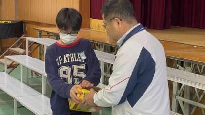 そこからは、「い組」「ろ組」それぞれの担任の先生から一人ひとりに手渡されました。