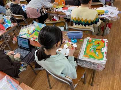 3年生の図工の様子です。マグネットマジックを使った製作の完成が近づいてきました。