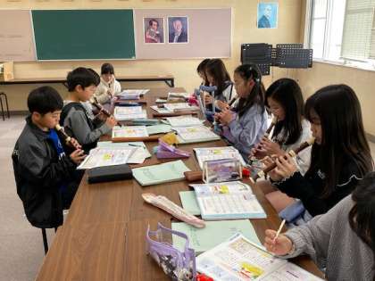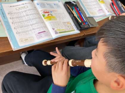 4年生の音楽では、『赤い屋根の家』という曲をリコーダーで吹いていました。