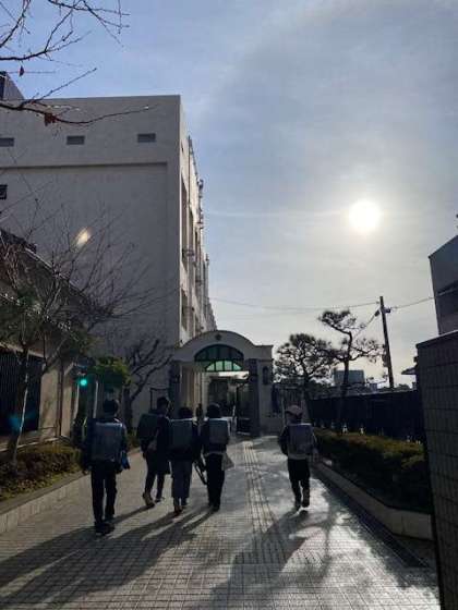 本日の天気は、曇りのち晴れ登校時の気温は11度です。朝から日差しを浴びて暖かいです。日中、気温は18度まで上がるようです。