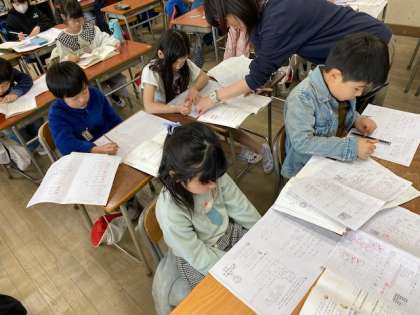 2年生の算数では、3学期のまとめの問題に関するテストの直しをしていました(^^)