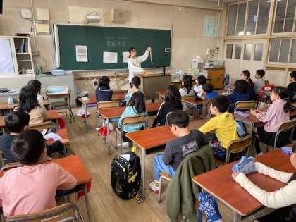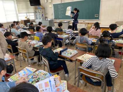3年生の教室をのぞいてみると、教科書や地図帳などが配られていました。