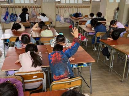 2年ろ組の教室をのぞいてみると学級目標を決めているところでした。