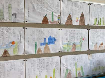 掲示板には国語で学んだ『たけのこぐん』の視写が貼り出されていました(^^)