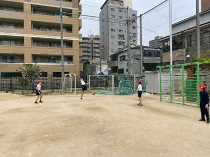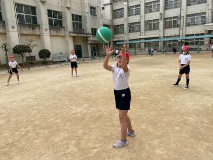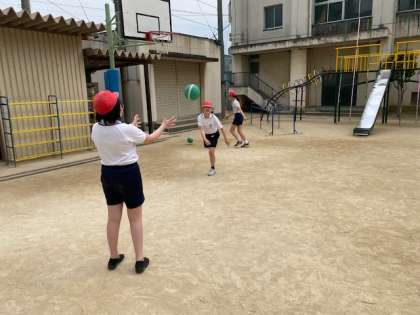 10人弱の子で円を作ってボールを回していくのですが、途中、3個目、4個目が投入されていき、素早く回して捕球体制に入らないとボールが受け取れません。