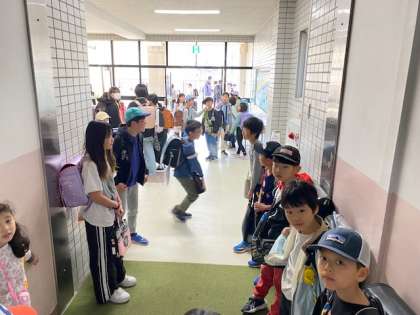 はじめの写真は、8:00のチャイムを待つ子どもたちです。今日は朝早くからたくさんの子が登校しています(^^)