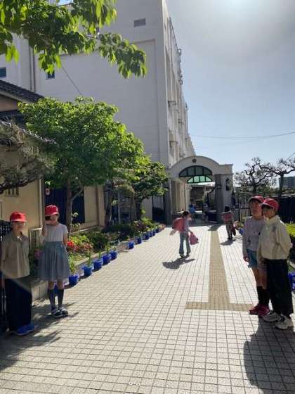 本日の天気予報は、晴れ、最高気温は25度で、まぶしい日差しが子どもたちを迎えます。