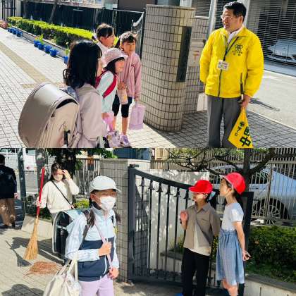 今日からあいさつ運動が始まり、4年生の学級代表児童も、校門で元気にあいさつをしていました。