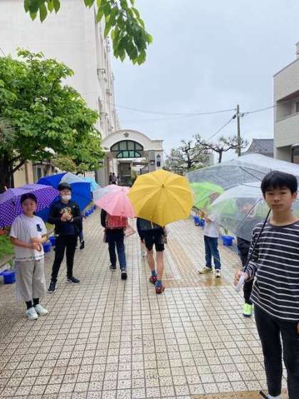 子どもたちが登校する時間帯は、小雨ながらあいにくの雨。しかし、あいさつ運動は、いつにも増して人数が多く、盛り上がっていました(^^)