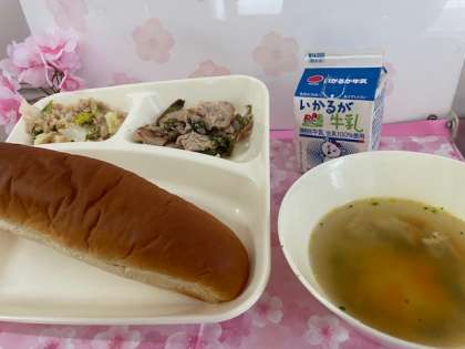 豚肉のガーリック焼き スープ ツナとキャベツのソテー