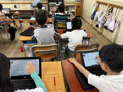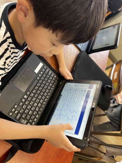 子どもたちは、画面上に表示される問題に集中して取り組み、自分のペースでどんどん問題を解いていきました。正解すると音が鳴ったり、次の問題に進んだりと、ゲーム感覚で楽しく学べる工夫がされており、学習への意欲も高まっている様子が見られました。