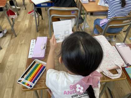 2年生からもらった朝顔の種とメッセージを嬉しそうに眺めていました。