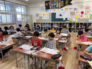 「ふたりのゆうた」という題材を通して、ふだんの生活でがんばっていることを話し合いました。家でどんなやくそくがあるのか、どんなことをがんばっているのか、たくさん発表をして教えてくれました。