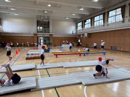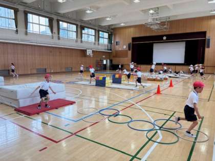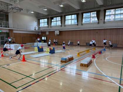 体つくり運動のためたくさんの教具を使い「サーキット」として学習しました。沢山汗をかきながら楽しく運動出来ました!準備から片付けまで自分たちで行いました。