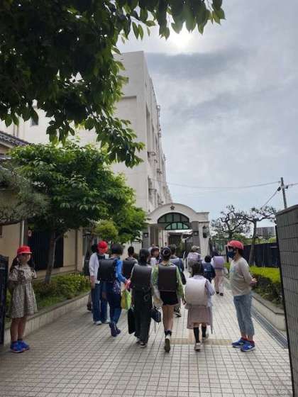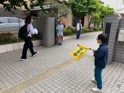 くもり空の中、あいさつ隊の元気な声が響いています(^^)