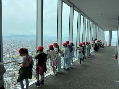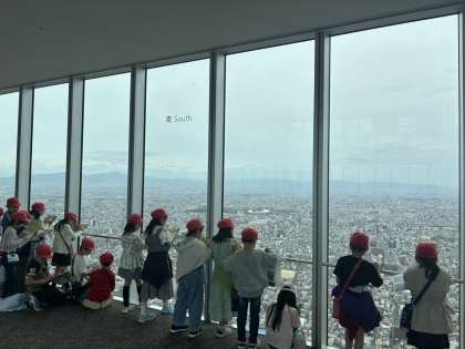 あべのハルカスの展望台に行き、大阪の様子について調べました。