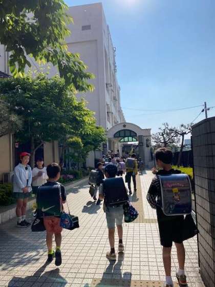 最近、1年生が学校たんけんをしたり、2年生が校内でインタビューしたり、活発です。